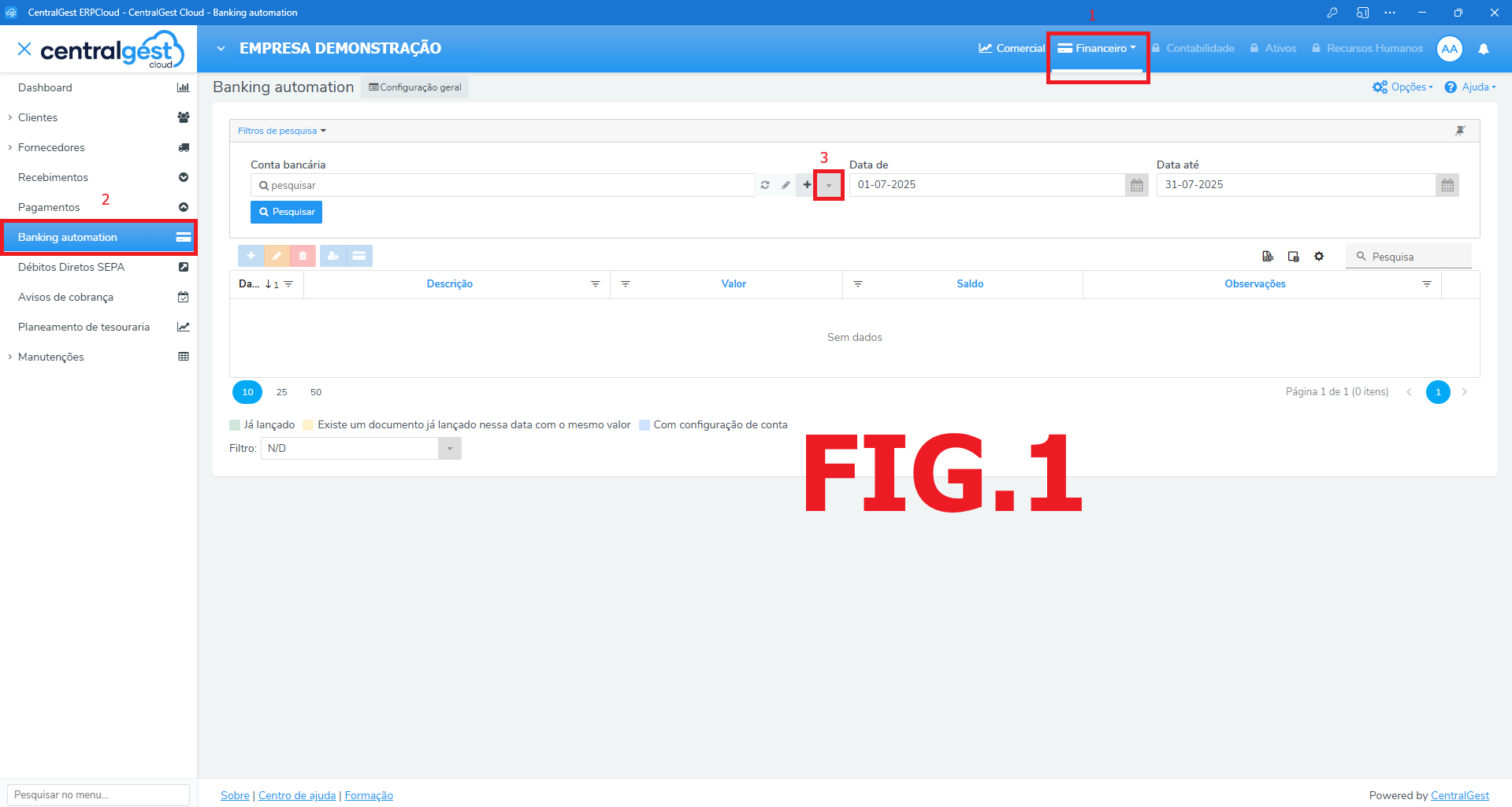 - Depois, clicar em "2" para aceder ao "Banking Automation";