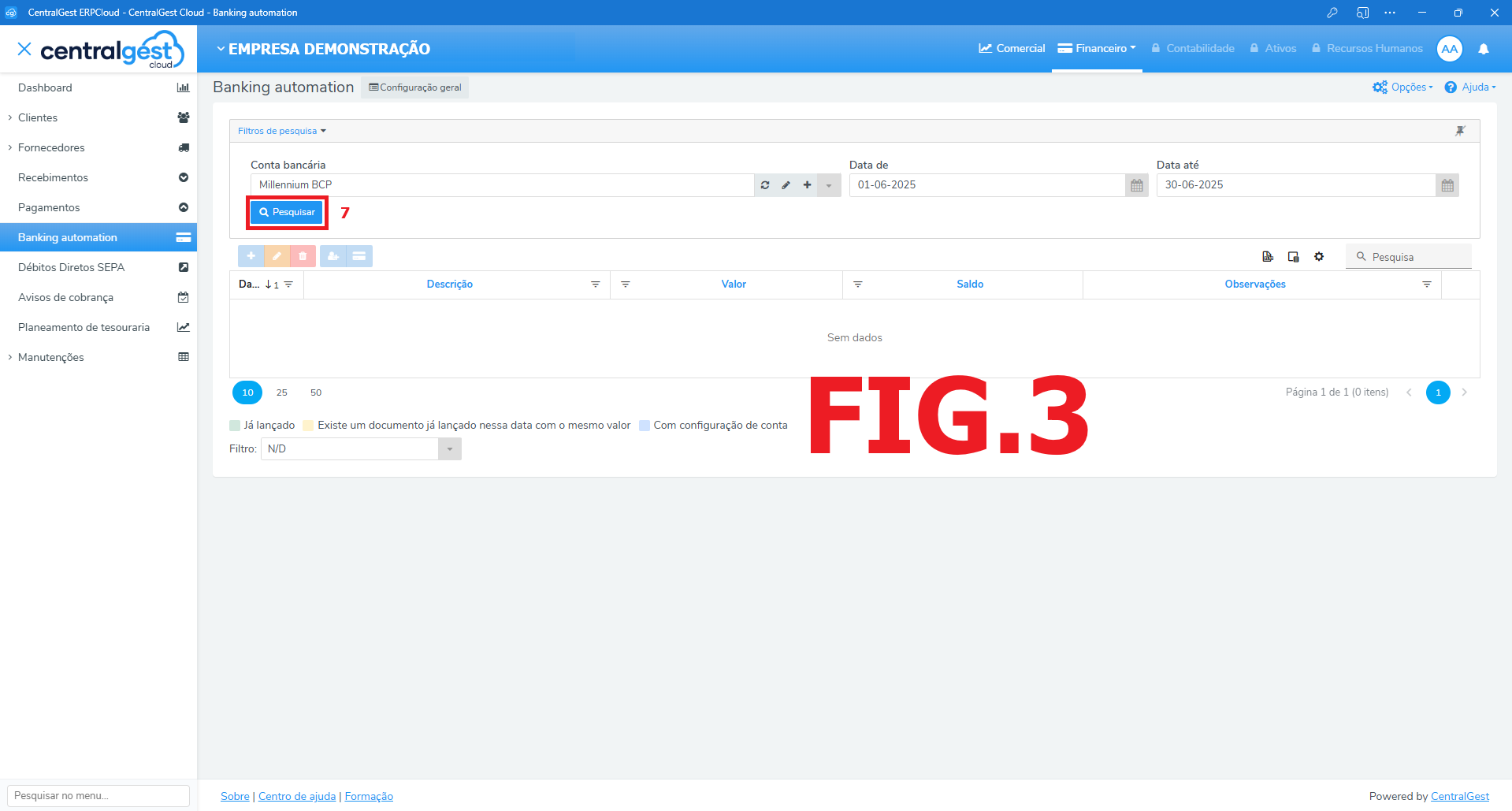 - Clicar em "pesquisar (7)" para aceder à informação das operações bancárias;