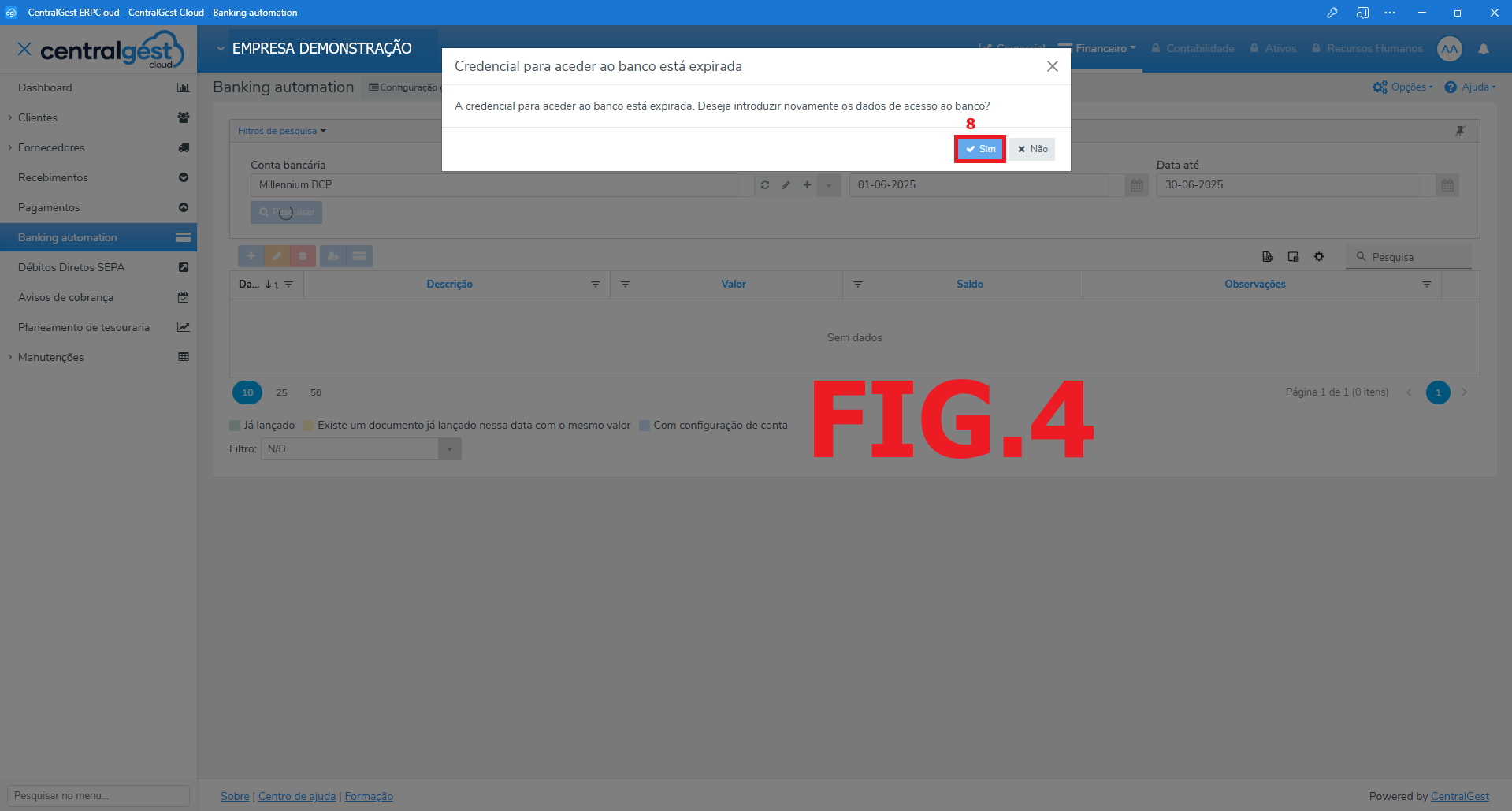 - Se as credenciais ainda estiverem válidas, deverá carregar a informação bancária, caso contrário, informará da necessidade de renovar as mesmas;
